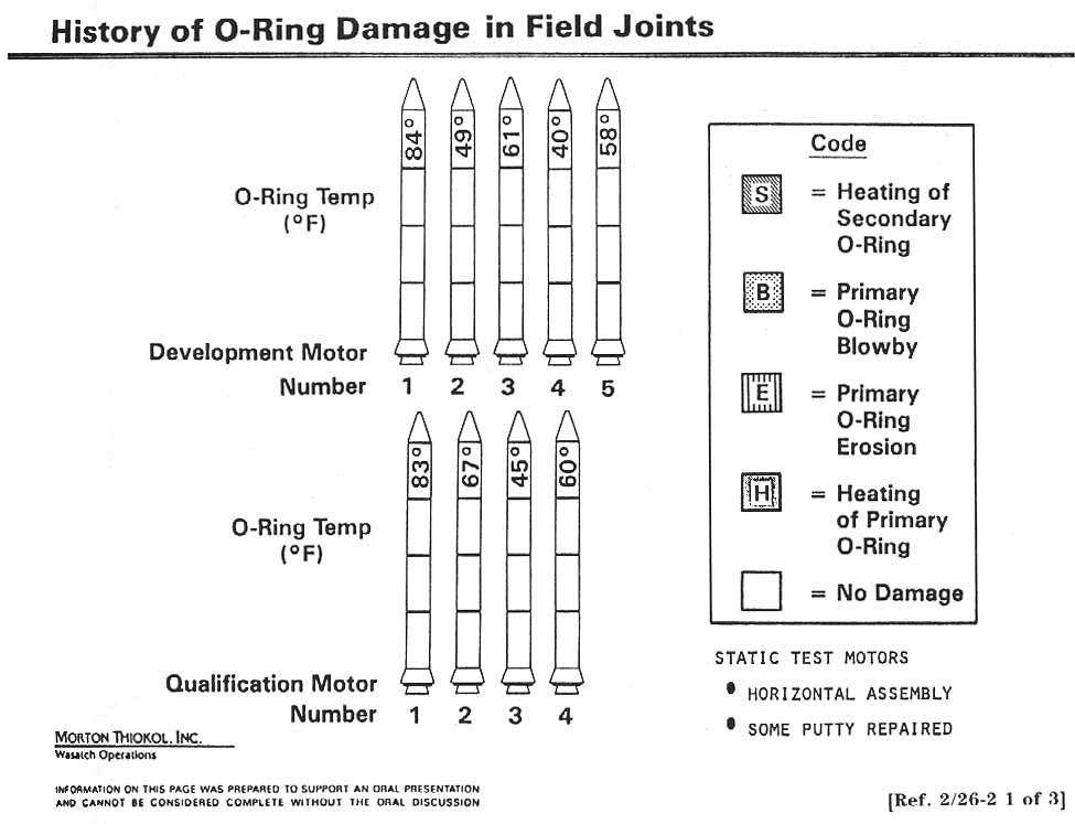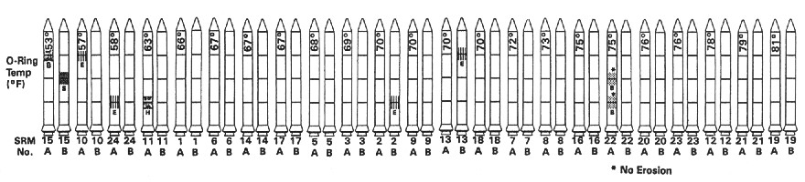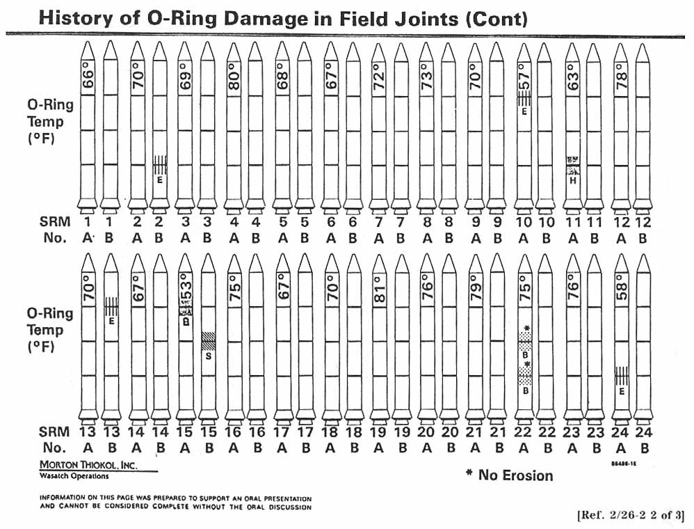 six contained no tabled data about either O-ring temperature, O-ring blow-by, or O-ring anomaly (these were primarily outlines of arguments being made by the Thiokol engineers).